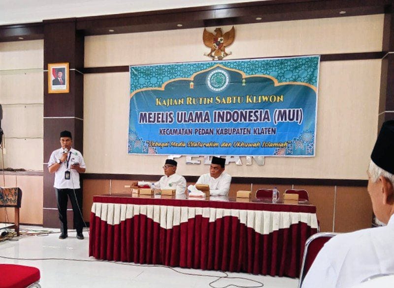 Pedan, Klaten – Menjelang pergantian tahun, Majelis Ulama Indonesia (MUI) Kecamatan Pedan menginisiasi pembuatan kalender tahun 2025. Dukungan penuh datang dari Camat Pedan, Didik Sudiarto, SE, M.Si, yang dalam pengajian rutin di Aula Kecamatan Pedan pada Jumat, 13 Desember 2024, menyatakan kesediaannya memesan 50 eksemplar kalender secara pribadi. Ia juga memastikan bahwa Kecamatan Pedan akan ikut menjadi sponsor dalam pengadaan kalender tersebut.